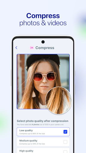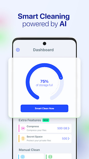 AI Cleaner - Phone Cleaner is an all-in-one Android utility that reclaims storage by detecting and removing duplicate/similar photos and videos, compresses media with adjustable quality, merges duplicate/incomplete contacts, prunes past calendar events, and offers a secure vault for private files. It also advertises junk/cache cleaning, memory cleanup, and battery optimization, all wrapped in a simple, one-tap interface.