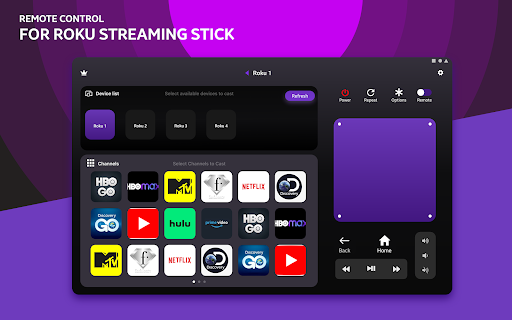 TV Control for Ruku TV is a free Android remote app that lets you control your Roku-compatible TV from your phone. Core features include an easy, icon-driven interface, smart remote controls (navigation, channel switching, volume, play/pause, voice), and a customizable remote layout with resizable buttons and shortcuts.