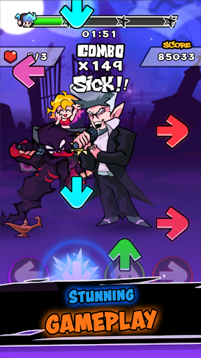 FNF Music Night Battle delivers a fun, pick-up-and-play rhythm experience built around responsive tapping, a generous song library, and showy visual flair. Its strong rating and large install base suggest it nails the core loop for casual players who want fast musical challenges without a steep learning curve. While it likely can’t match the precision and depth of top-tier, premium rhythm games—and may include common mobile trade-offs like ads or occasional performance hiccups—it succeeds as an energetic, free option for music game fans and FNF-styled aesthetics. If you want a no-cost rhythm fix with punchy presentation and lots of tracks, it’s an easy recommendation.