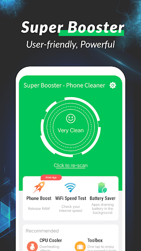 Super Booster - Phone Cleaner packages junk removal, RAM freeing, app management, battery saving, and CPU cooling into a single, easy utility aimed at keeping Android phones responsive. Its appeal lies in quick, visible cleanups and the convenience of managing apps and background processes without digging through system menus. Like many boosters, long-term speed gains may be modest and aggressive process killing can have side effects, but its 4.0 rating and large install base suggest it helps many users tackle everyday sluggishness. If you want a free, simple maintenance tool and don’t need deep diagnostics, it’s a practical pick; if you prefer minimal ads, fine-grained control, or fully transparent system behavior, consider more conservative tools like Files by Google or paid, brand-name cleaners.