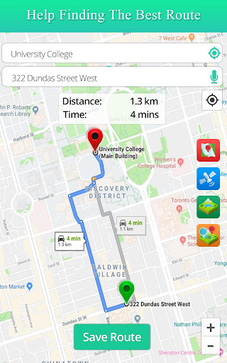 Live Satellite View GPS Map is a free maps and navigation app focused on quick satellite/street views, basic route planning (2D/3D), traffic details, voice guidance, and saving/sharing favorite locations. It promises real-time route info, nearest-place discovery, and simple tools like distance/area measurement.