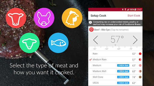 A companion app for the MEATER wireless smart meat thermometer that pairs over Bluetooth or Wi‑Fi to deliver accurate internal and ambient temperature tracking, step‑by‑step Guided Cook instructions, real‑time alerts (including resting guidance), multi‑probe support, cook history, and Wear OS glanceable progress.