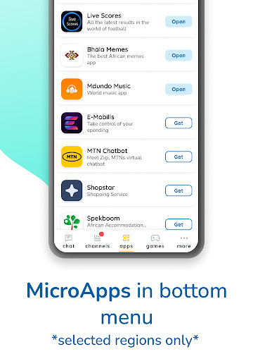 Ayoba is an all-in-one African super app that combines secure messaging (text, voice notes, voice/video calls), local entertainment (news, 150+ games, weekly curated music streaming), business/service discovery, and mobile payments via MTN MoMo in supported regions. It emphasizes low data usage and in some MTN markets offers zero-rated/bonus data for chatting and content.