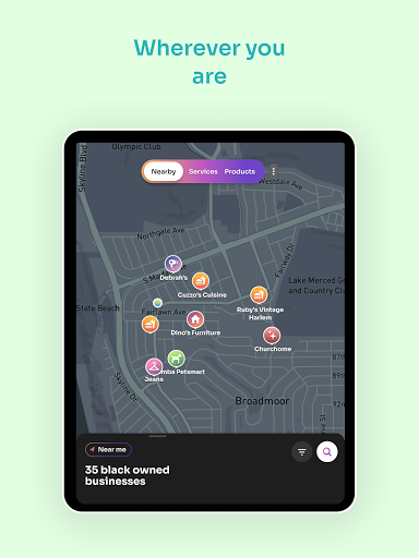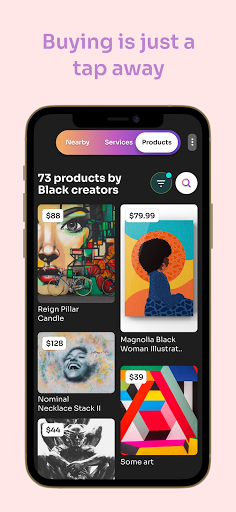 Blapp helps users discover and support Black-owned businesses across the US through map/list views, category filters, search, and sharing, with booking or purchasing handed off to platforms like Yelp and Etsy. It emphasizes community support, reviews/ratings, and occasional promotions.
