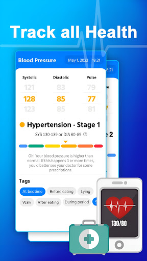 Blood Pressure Pro Tracker helps users log blood pressure readings, set custom reminders to measure consistently, and generate shareable reports to visualize trends over time.