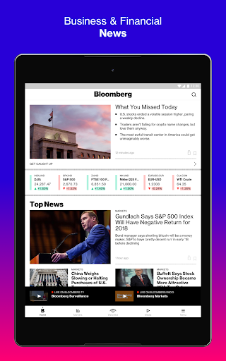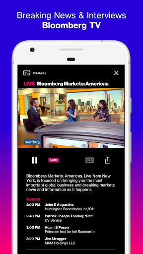Bloomberg: Finance Market News delivers real-time global finance and business reporting, market data, and portfolio tracking. Core features include customizable watchlists with alerts, interactive charts, live Bloomberg TV/Radio and podcasts, offline Businessweek reading, and Android Auto audio access, backed by Bloomberg’s newsroom coverage across markets, industries, tech, politics, and more.