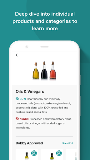 Bobby Approved helps shoppers quickly assess grocery products by scanning barcodes or searching/browsing by store, brand, or aisle. It flags problematic ingredients, highlights why an item is or isn’t approved, and teaches users how to read labels for higher-quality choices.