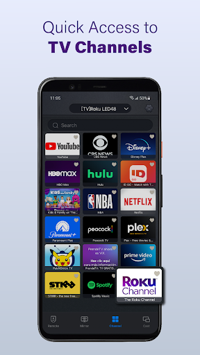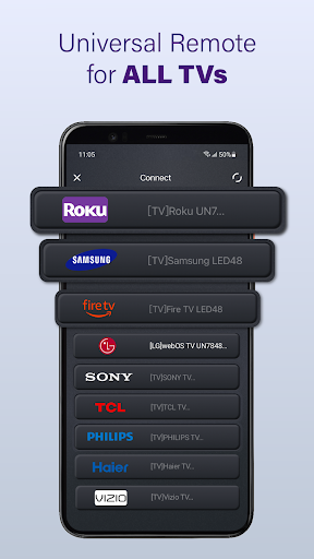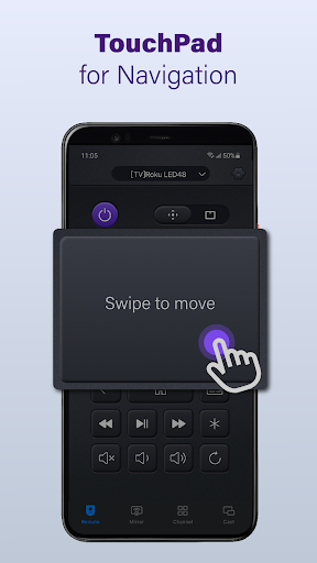 Universal remote app that controls Smart TVs over Wi‑Fi (and some via IR), offering power, volume, channels, playback, touchpad, keyboard input, quick search, and media features like casting and low‑latency screen mirroring.