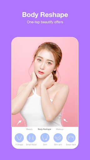 AI-powered selfie and beauty camera that offers real-time beautification, makeup overlays, filters, AR stickers, and a full photo editor with tools like blemish removal, reshaping, teeth whitening, and collage templates.