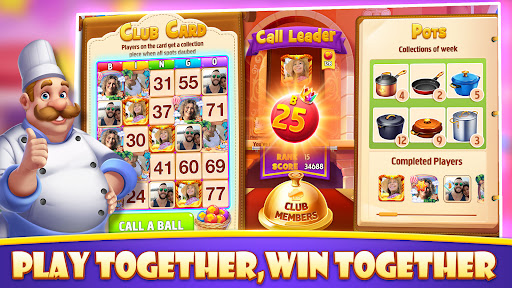 Live multiplayer bingo with 100+ themed rooms, 1–4 card play, power-ups/boosters, leaderboards and tournaments, collectible card books, cooking/side games, clubs/teams with trading, daily freebies, and optional offline play—delivered with polished visuals and music, and no forced ads.
