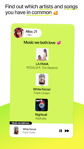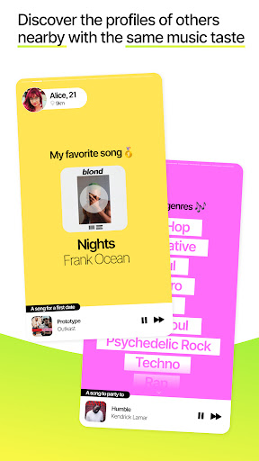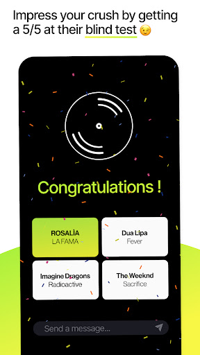A music-driven dating and friend-finding app where you list favorite artists/genres, play blind-test quizzes, swipe or message to connect, and collaborate around shared music tastes. Includes real-time recommendations and optional premium subscription.