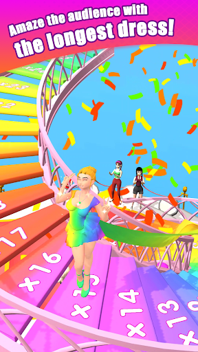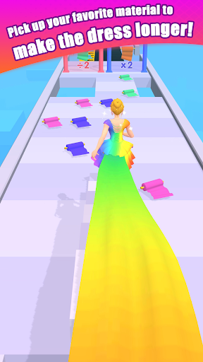 A casual 3D rhythm-runner where you swipe left/right to collect fabric, avoid obstacles, and complete a runway in sync with popular songs while customizing a fashion-forward avatar with dresses, hair, wings, and pets.
