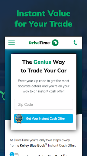 DriveTime Used Cars for Sale helps shoppers browse a large inventory of used cars, trucks, and SUVs, filter by key specs, view detailed listings with photos and free AutoCheck history reports, get personalized financing terms and down-payment estimates, locate nearby dealerships, value trade-ins, and chat with support.