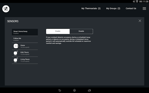 ecobee is a free companion app for ecobee smart thermostats and sensors that lets you adjust temperature remotely, build schedules, view energy usage insights, set up devices with guided instructions, create automations via Autopilot, and monitor doors/windows with intelligent alerts.