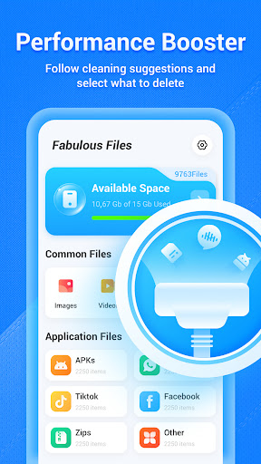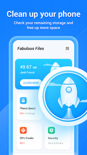 Android cleaner and file manager that frees storage by removing junk, duplicates, and temporary files, boosts performance by trimming background processes and RAM usage, and offers an easy interface to organize, categorize, and access files.