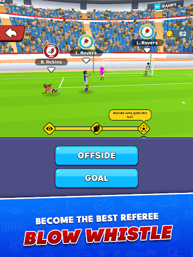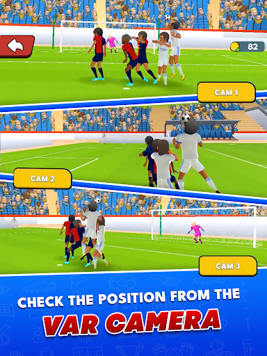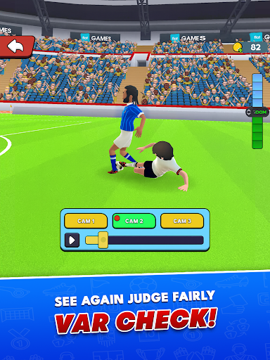Referee Simulator 3D puts you in the role of the match official, making live decisions on fouls, offsides, penalties, and discipline across a career mode. It features 3D matches, VAR-style reviews, fitness/stamina management, post-match performance reports, training scenarios, and a community feedback layer to refine your officiating.