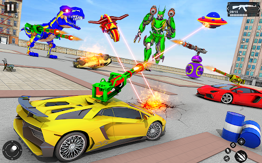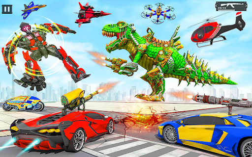 Arcade-style robot-car action where you transform between car, tractor, and dino robots to battle in city arenas, complete missions, and enjoy flashy effects. Emphasis on quick levels, smooth controls, and cinematic camera angles; marketed features mention open-world exploration and multiplayer, though core feel is casual, offline-friendly shooting and driving.
