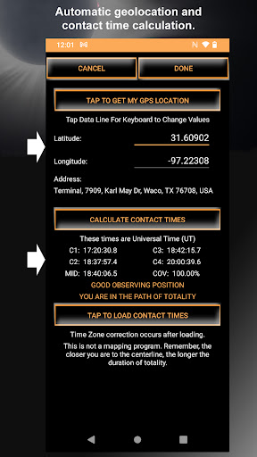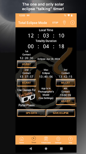 Accurate contact-time calculations; clear spoken countdowns that reduce stress during totality; simple two-tap setup; offline functionality; focused Photographer’s Mode for filter timing and key moments.