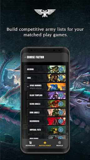 Official Warhammer 40,000 companion for building legal armies, browsing faction/unit datasheets, and referencing simplified core rules and Combat Patrol sheets. Includes Battle Forge list building tied to your collection and regular content updates aligned with the latest edition.