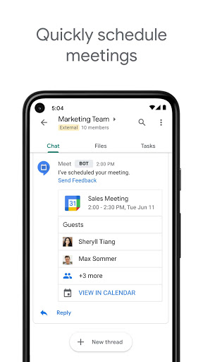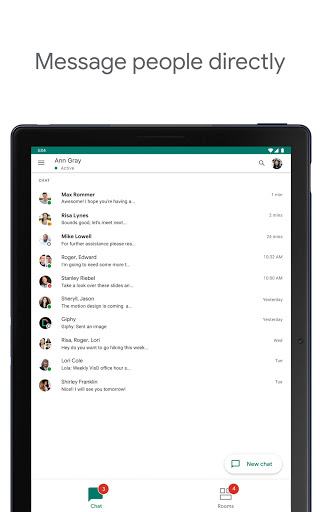 Google Chat is a Workspace-focused messaging app for teams and individuals, offering direct messages, group Spaces, audio/video notes and huddles, deep integration with Gmail, Drive, Calendar and Meet, AI (Gemini) features like conversation summaries, translation and search, plus enterprise security and admin controls.