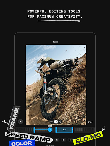 GoPro Quik is a mobile video editor that auto-creates highlight reels from your clips, syncs edits to music, and offers quick tools like trimming, speed control, filters/themes, text overlays, frame grabs, aspect adjustments, and 360° Reframe. It tightly integrates with GoPro cameras for fast transfers, auto upload, cross‑device cloud sync, and unlimited full‑quality backups for GoPro footage with a subscription.