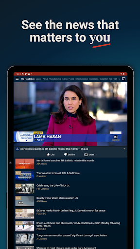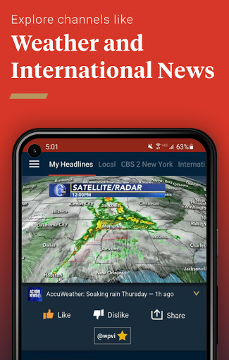 Haystack News aggregates and streams local, national, and international video news in one app. It builds a personalized newscast from selected topics and sources, offers live channels and on‑demand clips, and includes local weather and alerts.