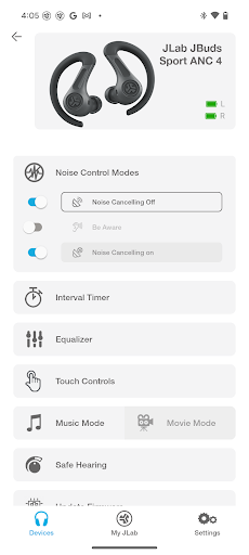 JLab is a companion app for JLab headphones/earbuds that unlocks device customization and maintenance: tweak ANC and Be Aware levels, remap touch controls, set Safe Hearing limits, fine‑tune a multi‑band EQ (plus presets), and install firmware updates across a wide list of supported models.
