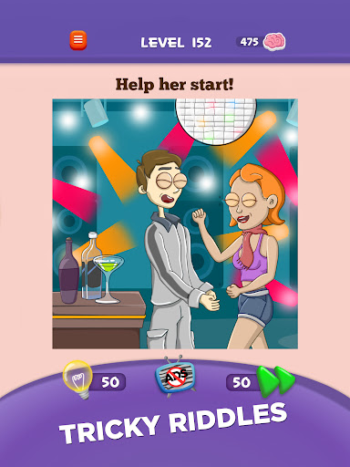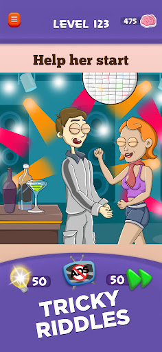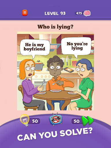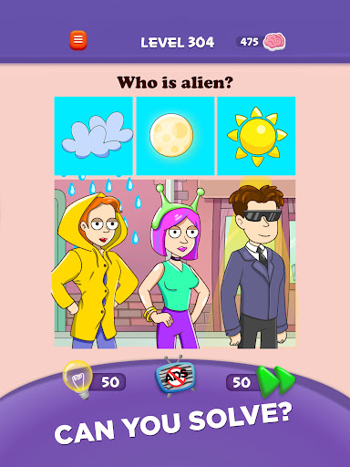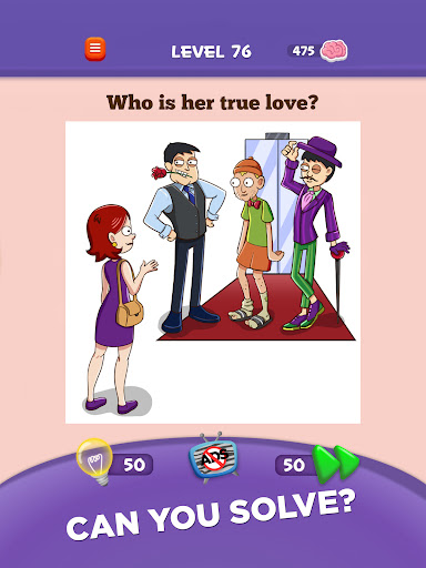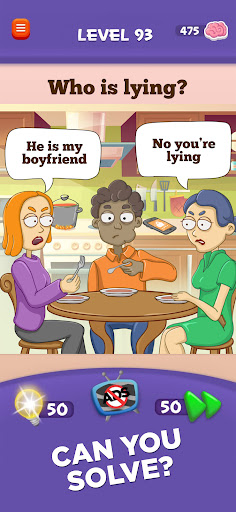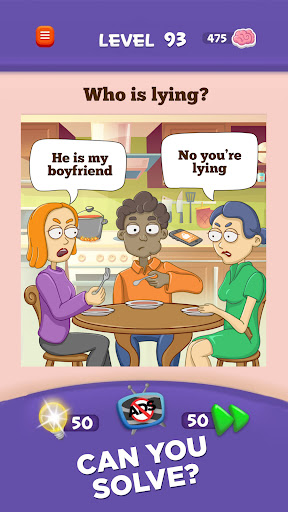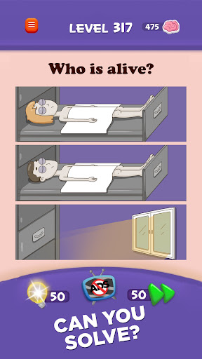 Versus Brain Test/Tricky Riddles-style games, it offers similarly clever ‘think outside the box’ levels with a playful aesthetic. Compared to Lumosity/Peak, it’s more entertainment than structured cognitive training (fewer metrics/progress insights). It stands out with story-like ‘who is?’ scenarios and variety, but monetization and repetitive content may lag behind best-in-class polish.