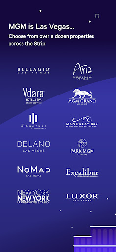 MGM Resorts (MGM Rewards) is a travel companion for booking MGM hotels, managing stays, mobile check-in/checkout, using a digital room key, tracking MGM Rewards status, reserving dining and entertainment, chatting with support, and navigating properties across Las Vegas and select U.S. locations.