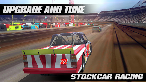 Stock Car Racing is an oval-focused racer with added dirt and stunt-truck events, offering nearly 300 cars, 6 tracks with variants, multiple modes (multiplayer, championship, endurance, hot lap), realistic physics with crash damage, and deep car upgrades and livery customization.