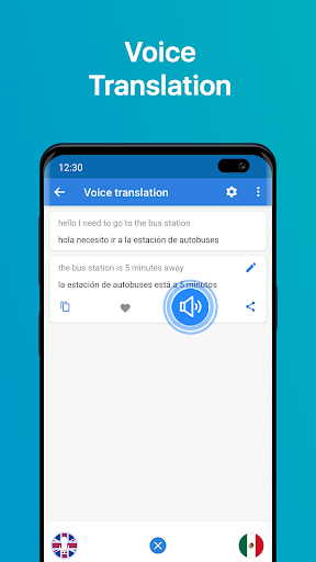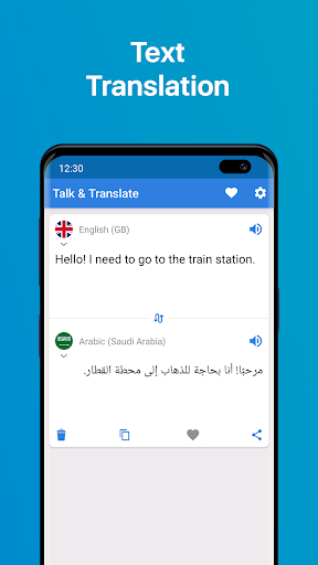 Talk & Translate is an AI-powered translator for real-time voice, text, and camera (OCR) translation across 100+ languages with offline packs, text-to-speech, voice-to-voice conversation mode, favorites, recent history, and a multitasking overlay.