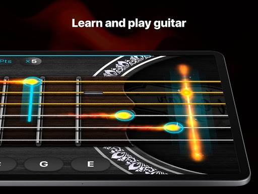 Guitar - Real games & lessons delivers a realistic, accessible virtual guitar with multiple instrument types, left/right‑handed layouts, and a large, frequently updated song library. The lesson and game modes make starting easy, while free‑play encourages creativity. Its strengths are quick engagement and convincing sound, making it great for beginners and casual players who want to learn songs or pass time musically. Downsides include recurring ads and a difficulty curve that may feel fast for newcomers, and it lacks the depth and structured feedback of premium, curriculum‑focused competitors. Overall, it’s a highly approachable, fun way to practice chords, riffs, and songs on your phone—best as a casual learning and jamming companion, with optional upgrades if you want more content and fewer interruptions.