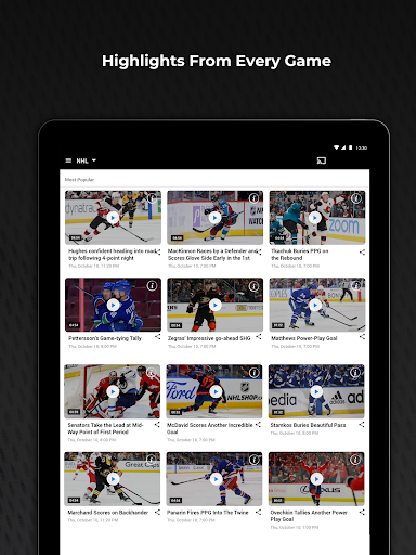 Official NHL companion for scores, live game streaming, advanced EDGE stats, highlights, news, team/player pages, personalized notifications (including goal horn alerts), and a revamped "How to Watch" guide.