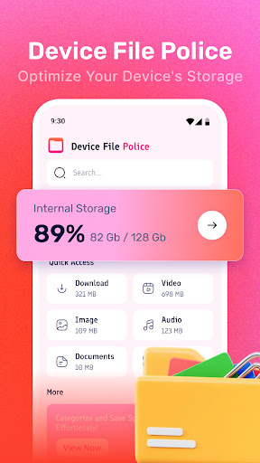 Device File Police is a free Android file manager focused on organizing, moving, and deleting files, with built‑in storage monitoring and optional encryption/password protection for sensitive items.