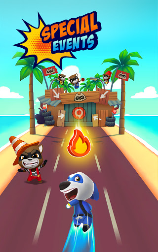 Talking Tom Hero Dash is a kid-friendly endless runner where you dash, dodge, and fight Rakoonz while collecting coins, unlocking superhero versions of Tom, Angela, Ben, Hank, and Ginger, rebuilding cities, and upgrading power-ups and costumes across multiple themed environments.