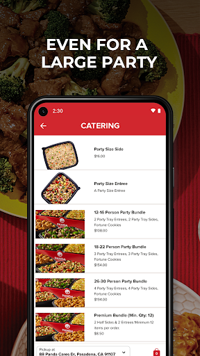 Panda Express lets you order ahead for dine-in, takeout, or delivery, earn Panda Rewards points by ordering in-app or scanning in-store, access surprise offers, quickly reorder favorites, and schedule or cater meals with a streamlined, location-aware experience.