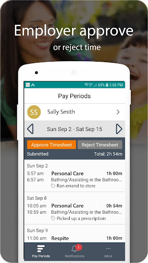 Clear, user-friendly screens make logging hours, services, and notes straightforward. Real-time clock in/out, offline mode, and on-device employer approvals reduce delays and help ensure on-time pay. EVV support aligns with 21st Century Cures Act requirements in participating programs.