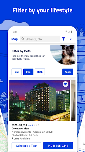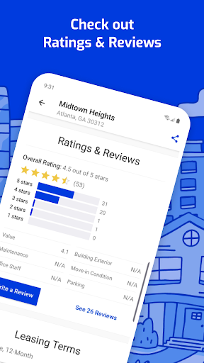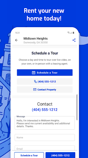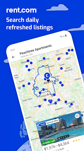 Rent. Apartments & Homes helps renters find apartments, condos, townhomes, and houses with advanced filters (price, beds, pet-friendly, availability), map/text search, verified listings, resident ratings/reviews, HD photos, floor plans, 360° tours, saved favorites, notifications, and direct contact tools (call/email), plus an optional Renter Card to stand out.