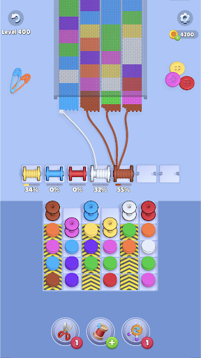 Knit Out is a casual puzzle game where you untangle colorful ropes from the top and guide them to matching bobbins below. It offers hundreds of levels, a relaxed no-timer design, satisfying animations and sounds, and a clean, approachable interface suitable for quick sessions or unwinding.