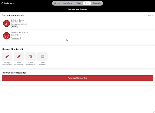 Easy access to membership controls, digital receipts, and rewards; quick location search with directions; convenient gift card and referral tools.