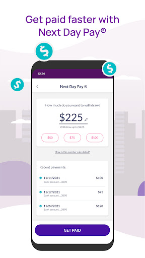 The app is free with no ads or in‑app purchases; there’s nothing to pay for, and value comes from flexible shifts, pay acceleration, and guarantees.