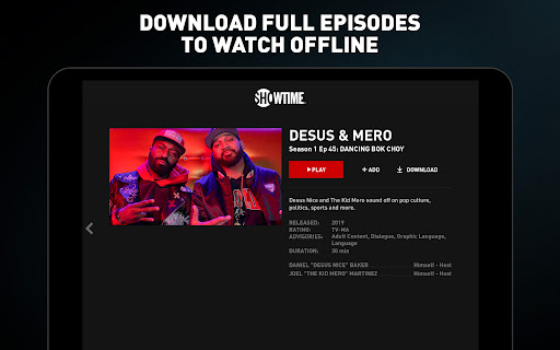 SHOWTIME is a free streaming app for movies and TV shows, offering on-demand playback, personalized watchlists, and offline downloads for viewing without an internet connection.