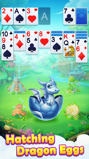 Klondike solitaire with a dragon-collecting meta game: play classic Draw 1/Draw 3 deals, use hints/undos/auto-complete, complete daily challenges and timed events, earn/hatched dragons and decorate island habitats; supports offline play, left-handed mode, and multiple save states.