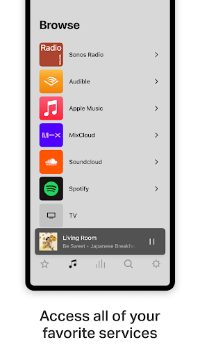 Sonos consolidates setup, control, and content for Sonos speakers into a clean, capable app. It streamlines browsing from major services like Spotify, Apple Music, Audible, and TIDAL, lets you group or split rooms on the fly, and fine‑tune sound with Trueplay and theater‑focused options like voice enhancement and night mode. With a strong rating and millions of installs, most users find it reliable and convenient, though complex ecosystems can bring occasional connectivity or UI‑change frustrations. There are no ads or purchases, and for Sonos owners it’s a must‑have; for everyone else, it serves no purpose without the hardware. Against alternatives, Sonos stands out for unified streaming control and multi‑room simplicity within its ecosystem.