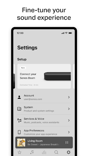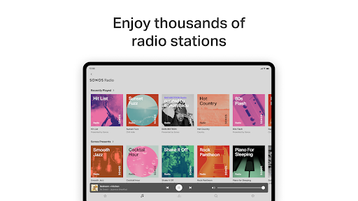 Sonos is the official controller for Sonos speakers, unifying streaming services and whole‑home audio control in a single app. It lets you browse and play music, podcasts, radio, and audiobooks from major services, manage rooms and groups, adjust volume and EQ, run Trueplay tuning, set up stereo pairs and home theater, save Sonos Favorites, and optionally use Sonos Voice Control for hands‑free playback.