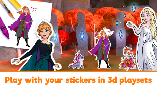 A kid-friendly digital coloring and play app featuring 2,000+ Disney, Pixar, Star Wars, and Marvel pages, a Magic Color auto-fill, brushes/crayons/glitter/patterns/stamps, dress-up and mix-and-match outfits, interactive 3D playsets, offline play, and COPPA-certified privacy.