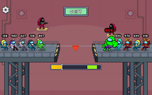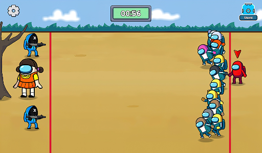 Arcade-style mashup of Squid Game-inspired trials and Among Us–themed characters. Offers multiple mini-games (Red Light Green Light, Glass Bridge, Tug of War, Dalgona Candy, Marbles, Battle/Lights Out) with simple one-touch controls, escalating difficulty, daily updates, and collectible skins/coins. Designed for quick sessions with a high-tension, fail-and-retry loop.