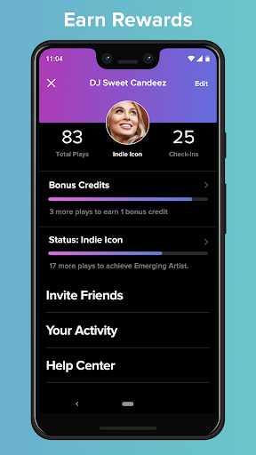 A mobile controller for TouchTunes-enabled bar and restaurant jukeboxes. It lets you find nearby venues, browse a large music catalog, queue songs, manage favorites/playlists, earn perks/credits, and influence what plays next—often with social elements like seeing others’ picks.