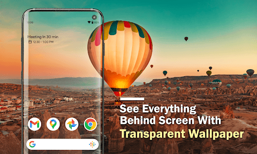 Transparent Live Wallpaper 4K overlays a real-time digital clock on customizable, transparent-style 4K live wallpapers, aiming to elevate home/lock screen aesthetics while remaining battery-efficient.