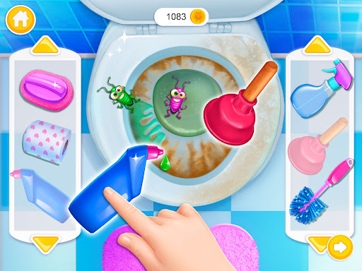 A kid-focused cleaning and house-makeover game where children tidy rooms, wash dishes, fix bathrooms, decorate spaces, and care for a pet kitten and puppy. Activities blend simple drag-and-drop tasks with light customization (decor, outfits, toys) to teach cleanliness, responsibility, and basic problem-solving.